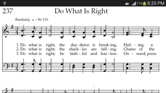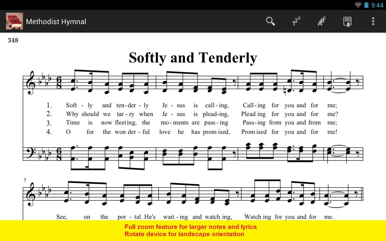 The swipe turning sequence can either be in numerical hymn number order or alphabetical hymn title order.